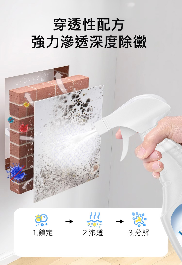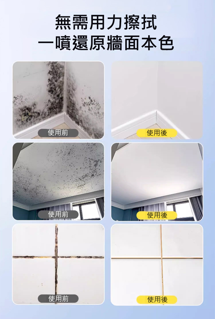 【無需擦拭】家用牆壁去黴斑啫咖哩噴霧